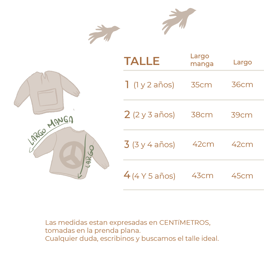 El bucito está confeccionado en tela gasa de algodón PREMIUM, lleva lazo regulable en en delantero, elástico en las muñecas y el símbolo de la PAZ cosido en la espalda. Tiene un bolsillo que a los niños les encanta para poner todo lo que encuentran! El modelo es super holgado y canchero! Es una prenda atemporal, que la vas a usar en muchos meses del año!